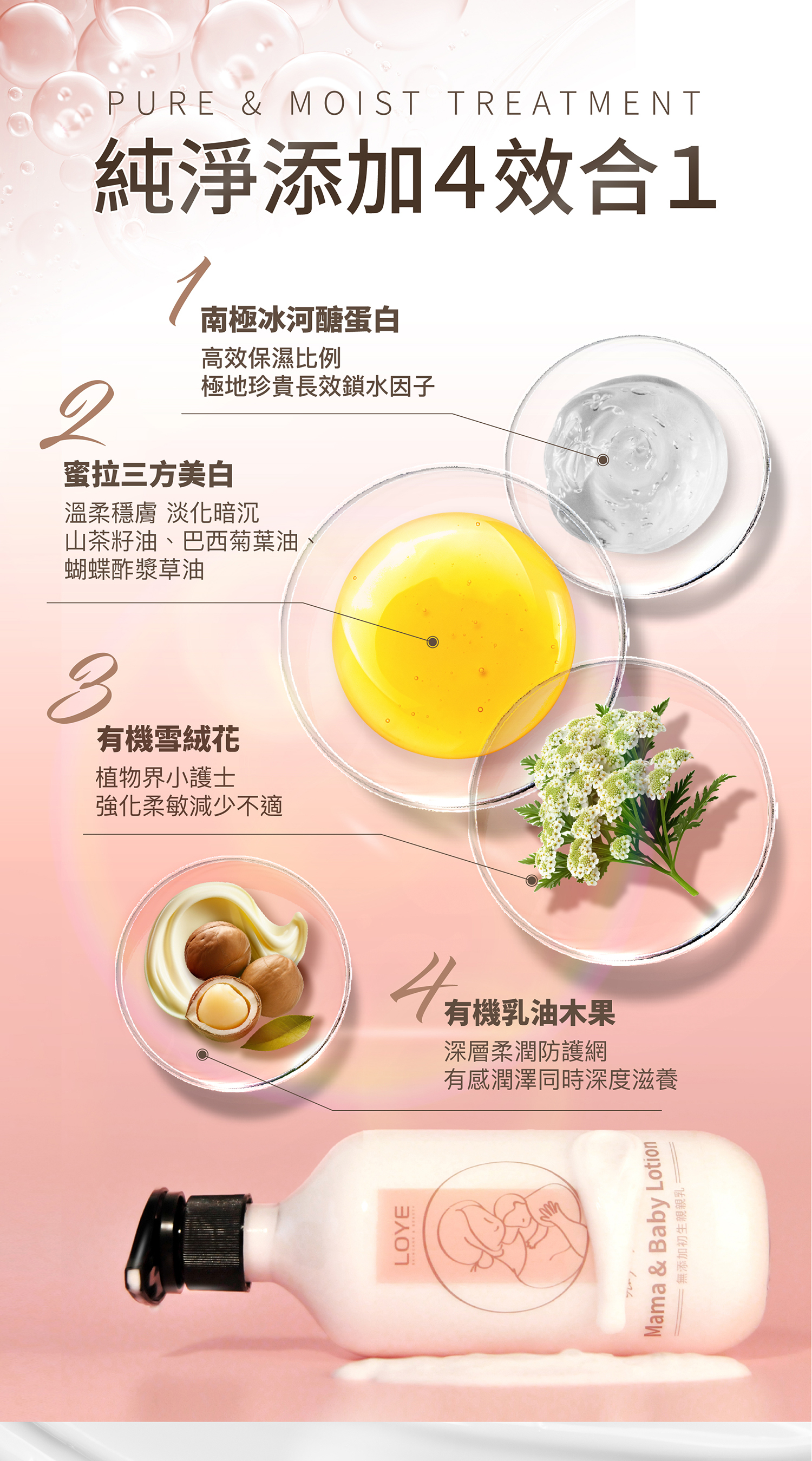 組合將沐浴轉化為一場粉紅泡泡的保養儀式,透過面膜及身體乳的高效美白與透亮保濕,